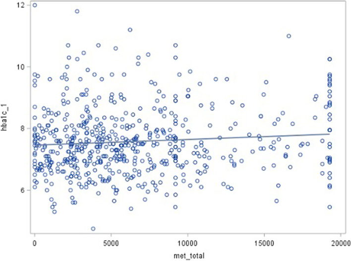 Results: A total of 592 patients were evaluable. A 6.8% of the sample performed light PA, 20.9% moderate and 72.3% vigorous. Estimated PA presented a high inter-individual variability. Men consumed more energy (METS) than women, these differences being more noticeable in vigorous METS (2865.80 in men vs 1352.12 in women). Women invested more min/week in the domestic and garden area (639.03 vs 344.39, p = 0,022). A correlation between glycemic control and the METs was not observed.