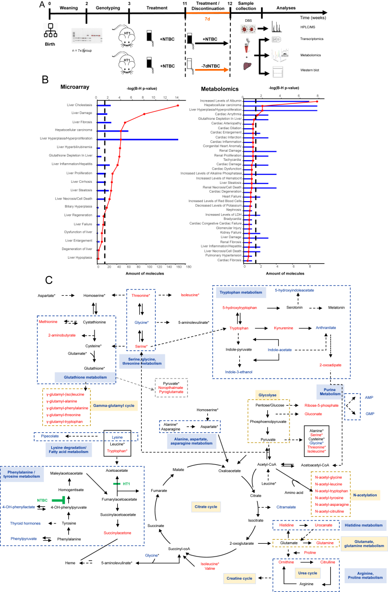 Short-term nitisinone discontinuation of hereditary tyrosinemia type 1 mice causes metabolic alterations in glutathione metabolism/biosynthesis and multiple amino acid degradation pathways