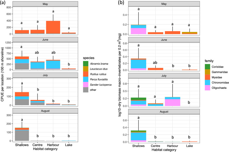 Methods: In 2020, we assessed how omnivorous and piscivorous fish species used these new habitats by tracking 78 adult fish of five key species across local and lake-scales. We monitored spring arrival of adult fish and assessed local macro-invertebrate and young-of-the-year fish densities.