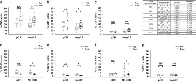 Conclusions: PBMCs display altered phenotype and function following completion of neo-adjuvant treatment. Anti-PD-1-responsive PBMCs in ex vivo ADCC assays may be a biomarker of treatment response.