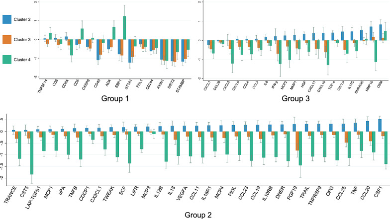 Methods: Plasma samples were collected from 2-year-old children (n = 202) during the ProPACT study, a randomised placebo-controlled trial of maternal probiotic supplementation. These samples were analysed for 92 inflammatory proteins using a multiplex proximity extension assay. Associations between inflammatory proteins and the presence and severity of AD, and the degree of preventive effect, was estimated individually using regression analysis and then collectively using unsupervised cluster analysis.