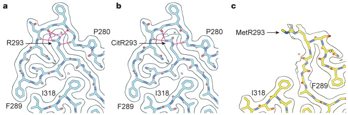 The abnormal assembly of TAR DNA-binding protein 43 (TDP-43) in neuronal and glial cells characterizes nearly all cases of amyotrophic lateral sclerosis (ALS) and around half of cases of frontotemporal lobar degeneration (FTLD)1,2. A causal role for TDP-43 assembly in neurodegeneration is evidenced by dominantly inherited missense mutations in TARDBP, the gene encoding TDP-43, that promote assembly and give rise to ALS and FTLD3-7. At least four types (A-D) of FTLD with TDP-43 pathology (FTLD-TDP) are defined by distinct brain distributions of assembled TDP-43 and are associated with different clinical presentations of frontotemporal dementia8. We previously showed, using cryo-electron microscopy, that TDP-43 assembles into amyloid filaments in ALS and type B FTLD-TDP9. However, the structures of assembled TDP-43 in FTLD without ALS remained unknown. Here we report the cryo-electron microscopy structures of assembled TDP-43 from the brains of three individuals with the most common type of FTLD-TDP, type A. TDP-43 formed amyloid filaments with a new fold that was the same across individuals, indicating that this fold may characterize type A FTLD-TDP. The fold resembles a chevron badge and is unlike the double-spiral-shaped fold of ALS and type B FTLD-TDP, establishing that distinct filament folds of TDP-43 characterize different neurodegenerative conditions. The structures, in combination with mass spectrometry, led to the identification of two new post-translational modifications of assembled TDP-43, citrullination and monomethylation of R293, and indicate that they may facilitate filament formation and observed structural variation in individual filaments. The structures of TDP-43 filaments from type A FTLD-TDP will guide mechanistic studies of TDP-43 assembly, as well as the development of diagnostic and therapeutic compounds for TDP-43 proteinopathies.