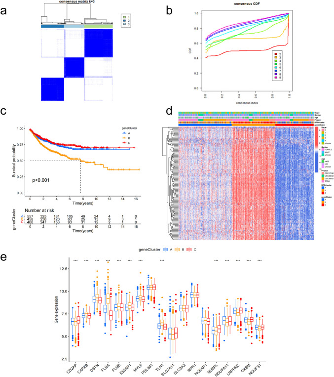Results: Using disulfidptosis-related genes collected from the literature, we classified colorectal cancer patients from public databases into three subtypes. The differentially expressed genes between subtypes were clustered into three gene subtypes, and eight characteristic genes were screened to construct a prognostic model.