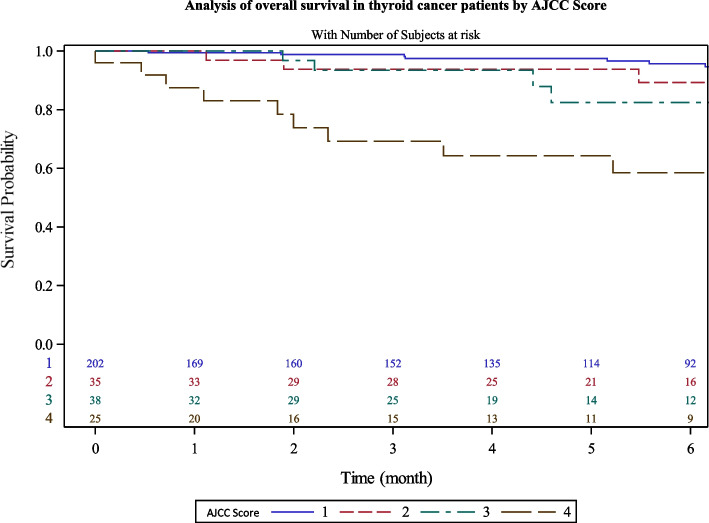 Background: Thyroid cancer (TC) overall survival at 5 years was estimated at 97% in mainland France over 2010-2015. Its prognosis is known to be affected by patient age, tumor histology, size, and extension. This study aims to describe overall survival of thyroid cancer patients diagnosed between 2008 and 2018 in Martinique.