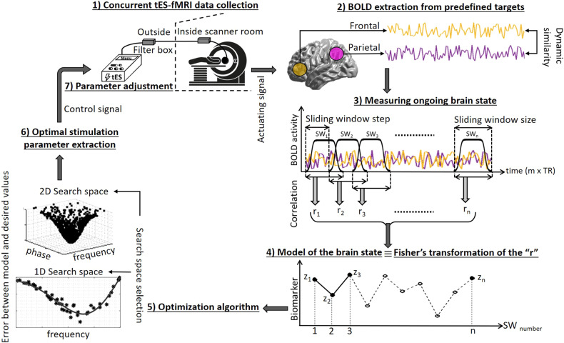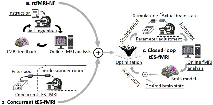 One of the most critical challenges in using noninvasive brain stimulation (NIBS) techniques for the treatment of psychiatric and neurologic disorders is inter- and intra-individual variability in response to NIBS. Response variations in previous findings suggest that the one-size-fits-all approach does not seem the most appropriate option for enhancing stimulation outcomes. While there is a growing body of evidence for the feasibility and effectiveness of individualized NIBS approaches, the optimal way to achieve this is yet to be determined. Transcranial electrical stimulation (tES) is one of the NIBS techniques showing promising results in modulating treatment outcomes in several psychiatric and neurologic disorders, but it faces the same challenge for individual optimization. With new computational and methodological advances, tES can be integrated with real-time functional magnetic resonance imaging (rtfMRI) to establish closed-loop tES-fMRI for individually optimized neuromodulation. Closed-loop tES-fMRI systems aim to optimize stimulation parameters based on minimizing differences between the model of the current brain state and the desired value to maximize the expected clinical outcome. The methodological space to optimize closed-loop tES fMRI for clinical applications includes (1) stimulation vs. data acquisition timing, (2) fMRI context (task-based or resting-state), (3) inherent brain oscillations, (4) dose-response function, (5) brain target trait and state and (6) optimization algorithm. Closed-loop tES-fMRI technology has several advantages over non-individualized or open-loop systems to reshape the future of neuromodulation with objective optimization in a clinically relevant context such as drug cue reactivity for substance use disorder considering both inter and intra-individual variations. Using multi-level brain and behavior measures as input and desired outcomes to individualize stimulation parameters provides a framework for designing personalized tES protocols in precision psychiatry.