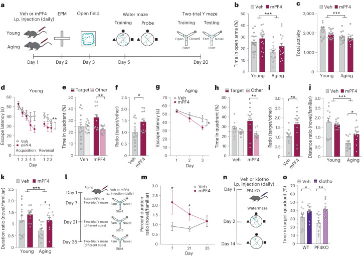 The Regents of the University of California hold an issued patent on ‘Methods and compositions for improved cognition’ involving klotho (US10864256B2, Inventor D.B.D.) and have applied for a provisional patent applications related to the content of the manuscript findings, ‘Platelet factors and cognitive improvement’ (PCT/US2021/017580, coinventors C.P., S.V. and D.B.D.) and ‘Use of downstream factors in the klotho pathway to assess klotho activity’ (PCT/US2021/020706, inventor D.B.D.). The rest of the authors (O.H., S.G., A.J.M., F.M., B.K. and T.W.-C.) have no competing interests related to the manuscript. D.B.D. consulted for Unity Biotechnology (unrelated to content of manuscript) and SV Health Investors.