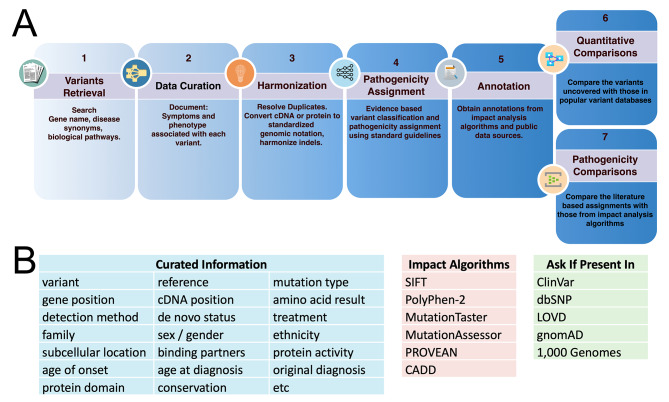 Conclusions: Despite being published in the literature, pathogenicity data on patient variants may remain inaccessible for genetic diagnosis, therapeutic target identification, mechanistic understanding, or hypothesis generation. Clinical and functional details presented in the literature are important to make pathogenicity assessments. Impact predictions remain imperfect but are improving, especially for single nucleotide exonic variants, however such predictions are less accurate or unavailable for intronic and multi-nucleotide variants. Developing text mining workflows that use natural language processing for identifying diseases, genes and variants, along with impact prediction algorithms and integrating with details on clinical phenotypes and functional assessments might be a promising approach to scale literature mining of variants and assigning correct pathogenicity. The curated variants list created by this effort includes context details to improve any such efforts on variant curation for rare diseases.