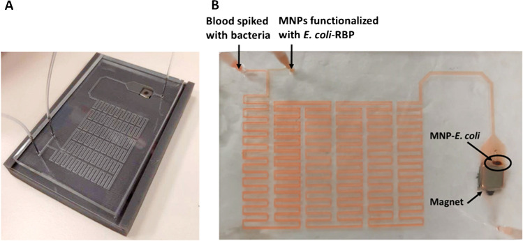 Keywords: 3D-printed; Bacteriophage receptor binding protein (RBP); Blood; Escherichia coli; Magnetic nanoparticles; Microfluidic.