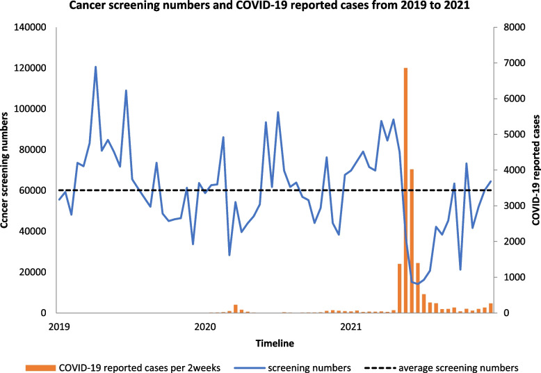 Method: In this study we have analyzed the change in screening numbers for cancer during the period of the 2019 to 2021 COVID-19 outbreak in Taiwan.
