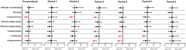 Methods: We conducted repeated cross-sectional and multivariable regression analyses to compare the mental health of in-center hemodialysis and peritoneal dialysis patients from March 2019 until August 2021 using data from the Dutch nOcturnal and hoME dialysis Study To Improve Clinical Outcomes. The study period was divided into one pre-pandemic and six 3-month pandemic periods (period 1-period 6). Mental health was assessed with the Mental Component Summary score of the 12-item Short Form health survey and mental symptoms of the Dialysis Symptom Index.