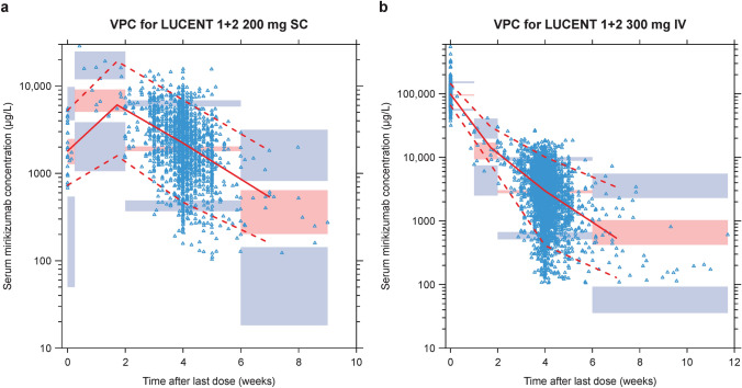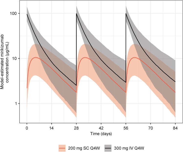 Methods: Serum pharmacokinetic data in patients receiving mirikizumab 50-1000 mg intravenously every 4 weeks as induction treatment and mirikizumab 200 mg subcutaneously every 4 or 12 weeks as maintenance treatment across three trials (N = 1362) were analyzed using non-linear mixed-effects modeling. Covariate effects on mirikizumab exposure were evaluated using simulation-based estimations.