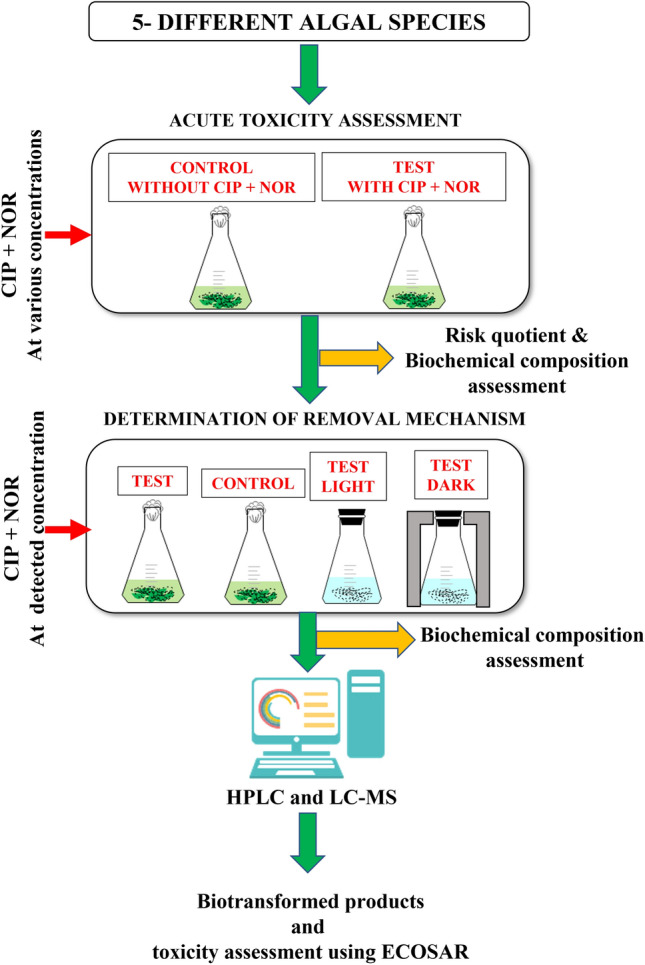 An investigation on removal of ciprofloxacin and norfloxacin by phycoremediation with an emphasis on acute toxicity and biochemical composition