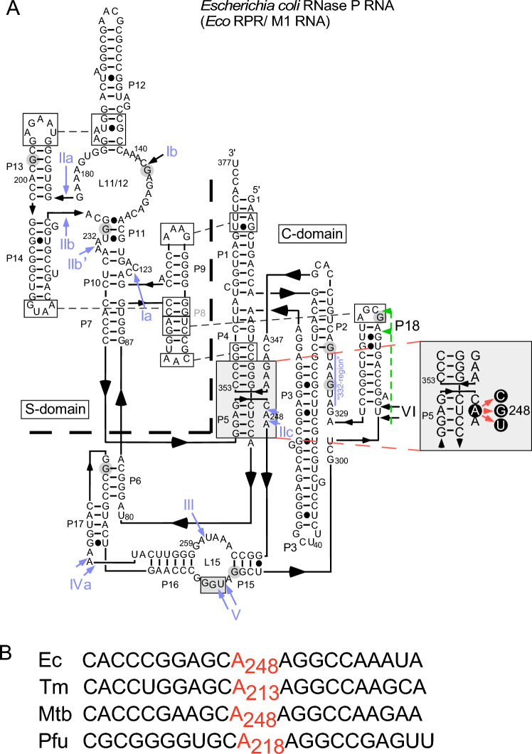Importance of residue 248 in Escherichia coli RNase P RNA mediated cleavage
