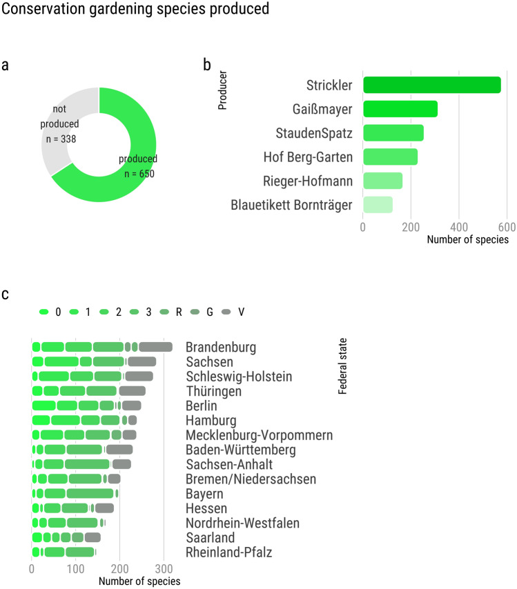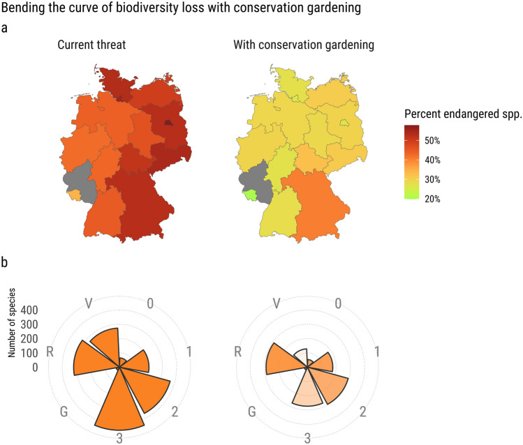 Conservation gardening (CG) represents a socio-ecological approach to address the decline of native plant species and transform the gardening industry into an innovative conservation tool. However, essential information regarding amenable plants, their ecological requirements for gardening, and commercial availability remains limited and not readily available. In this study, we present a workflow using Germany as a case study to bridge this knowledge gap. We synthesized the Red Lists of all 16 federal states in Germany, and text-mined a comprehensive platform for garden plants, as well as multiple German producers of native plants. To provide accessible information, we developed a user-friendly app ( https://conservation-gardening.shinyapps.io/app-en/ ) that offers region-specific lists of CG plants, along with practical guidance for planting and purchasing. Our findings reveal that a median of 845 plant species are red-listed across federal states (ranging from 515 to 1123), with 41% of these species amenable to gardening (ranging from 29 to 53%), resulting in a total of 988 CG species. Notably, 66% of these species (650) are already available for purchase. Additionally, we observed that many CG plants exhibit drought tolerance and require less fertilizer on average, with implications for long-term urban planning and climate adaptation. Collaborating with gardening experts, we present a selection of purchasable CG balcony plants for each federal state, highlighting the feasibility of CG even for individuals without gardens. With a multitude of declining plants amenable to gardening and the vital role of gardens as refuges and green corridors, CG holds substantial potential to catalyze transformative change in bending the curve of biodiversity loss.