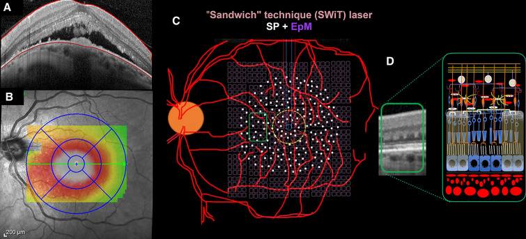 Conclusions: The novel combined laser modality with Pascal® SP laser plus EpM-SDL treatment may induce subretinal fluid regression and BCVA improvement 1 year after treatment in DSM patients with SRD.