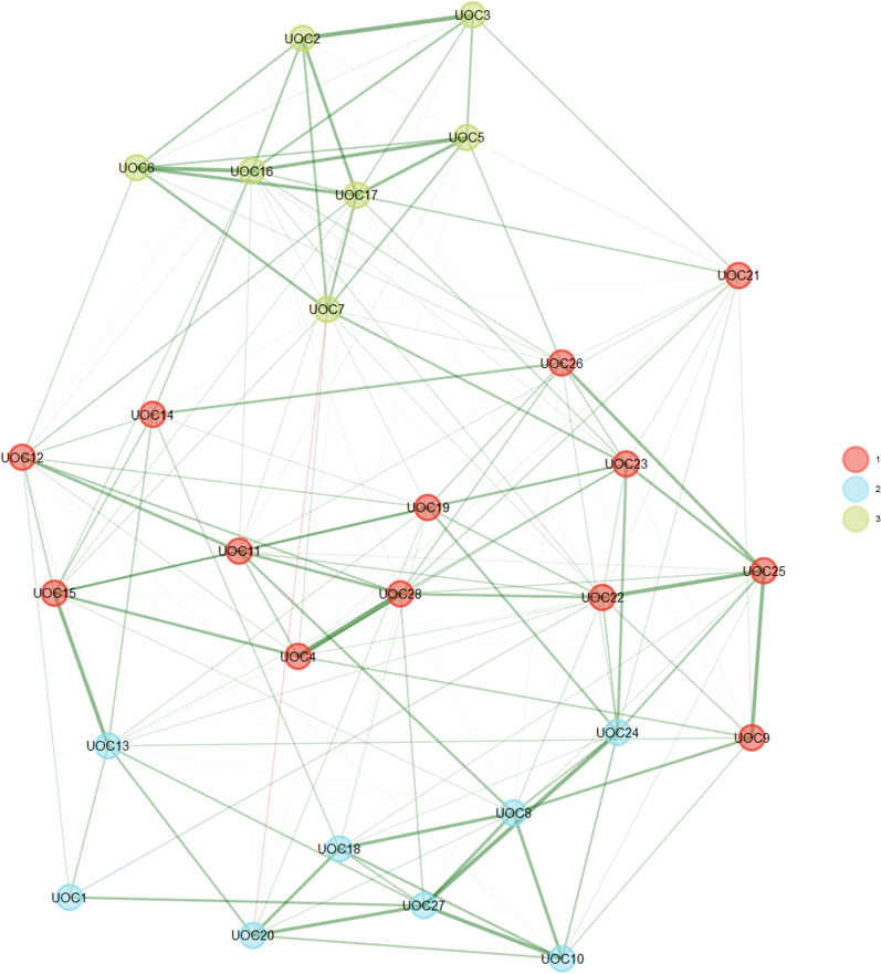 Results: The Persian version of UOC showed a convenient internal consistency with Cronbach's alpha coefficient for the total scale 0.88. UOC scores were significantly correlated with OCI-R, K-10, and YBOCS. The EFA and EGA showed four and three-factor solutions with 25 and 28 items, respectively. Also, CFA showed that these two solutions were reliable, and the three-factors solution showed higher fit indexes. Finally, the results showed that item-27 was the most central item in the UOC network structure.