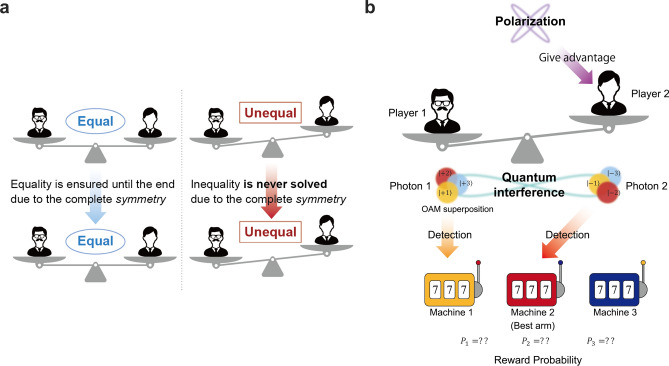 Collective decision-making plays a crucial role in information and communication systems. However, decision conflicts among agents often impede the maximization of potential utilities within the system. Quantum processes have shown promise in achieving conflict-free joint decisions between two agents through the entanglement of photons or the quantum interference of orbital angular momentum (OAM). Nonetheless, previous studies have shown symmetric resultant joint decisions, which, while preserving equality, fail to address disparities. In light of global challenges such as ethics and equity, it is imperative for decision-making systems to not only maintain existing equality but also address and resolve disparities. In this study, we investigate asymmetric collective decision-making theoretically and numerically using quantum interference of photons carrying OAM or entangled photons. We successfully demonstrate the realization of asymmetry; however, it should be noted that a certain degree of photon loss is inevitable in the proposed models. We also provide an analytical formulation for determining the available range of asymmetry and describe a method for obtaining the desired degree of asymmetry.