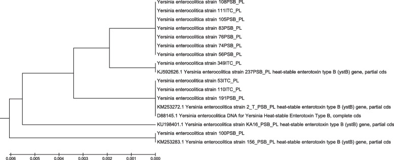 Conclusions: The results of this study indicate that Y. enterocolitica is present in cattle herds in Poland. The strains isolated from live cattle were ystB-positive, most of them belonged to bioserotype 1A/NT. The prevalence of Y. enterocolitica strains was generally low in cold-stored beef carcasses.