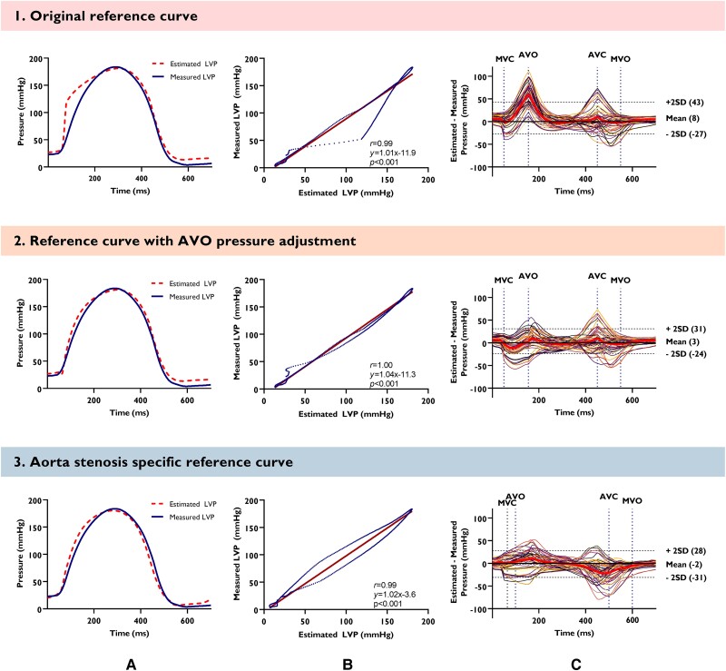 Conclusion: This study confirms the validity of the non-invasive MWI in patients with AS. The accuracy of estimated LVP curves improved when matching AVO to the diastolic pressure in the original model, mirroring that of the AS-specific model. This may sequentially enhance the accuracy of regional MWI assessment.