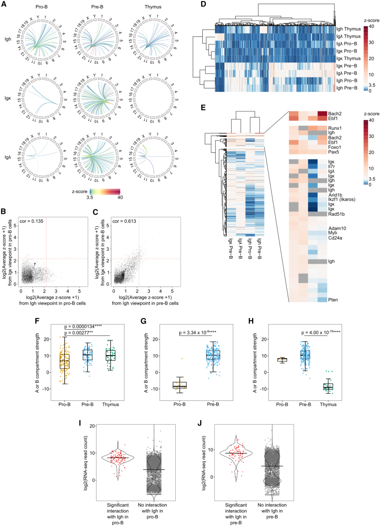 Keywords: 3D immunoglobulin structure; CP: Immunology; Capture Hi-C; genome organization; immunoglobin locus; interchromosomal; polymer modeling.