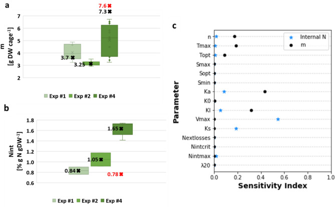 Offshore macroalgae production could provide an alternative source of biomass for food, materials and energy. However, the offshore environment in general, specifically the Eastern Mediterranean Sea (EMS) offshore, is a high energy and low nutrients environment, thus challenging for macroalgae farming. In this study, we experimentally investigated the impact of season, depth, and pre-cultivation fertilization duration on the growth rates and chemical composition of offshore Ulva biomass, and developed a predictive model tailored to offshore conditions, capable of estimating both biomass growth rate and nitrogen content. Specifically, we measured Ulva biomass growth rate and internal nitrogen in the nitrogen-poor EMS a few kilometers offshore the Israeli coast at various depths and on-shore pre-cultivation fertilization schedules. Based on these data, we constructed a predictive cultivation model of Ulva offshore growth, which allows for the optimization of fertilization requirements for offshore cultivation. This study provides new insights on the effects of seasonality, depth, and pre-cultivation fertilization duration on growth rates and chemical composition of offshore Ulva sp. biomass production.