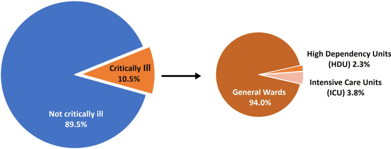 Conclusions: The prevalence of critical illness was higher than previous, indirect estimates. One in ten hospitalized patients were critically ill, the large majority of which were cared for in general wards. This suggests a hidden burden of critical illness of potential public health, health system and hospital management significance.