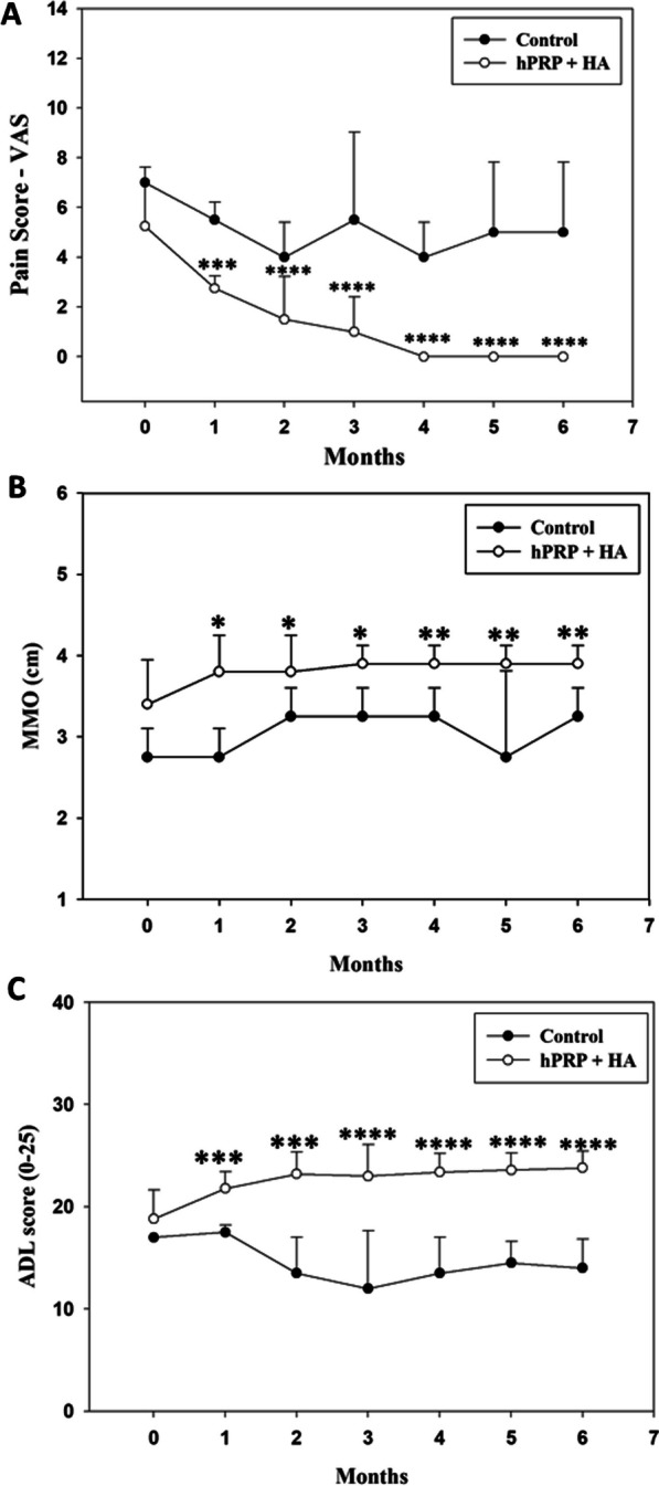 Conclusion: Conclusively, this study highlighted the therapeutic potential of the hPRP and HA combination for TMJ-OA therapy, with detailed evidence from bench to bedside. Trial registration Taipei Medical University Hospital (TMU-JIRB No. N201711041). Registered 24 November 2017. https://tmujcrc.tmu.edu.tw/inquiry_general.php .