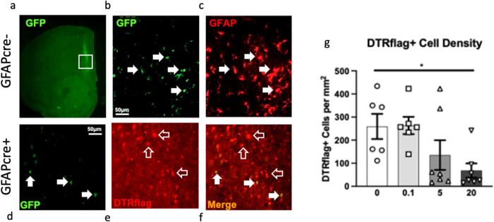 Reductions of astroglia expressing glial fibrillary acidic protein (GFAP) are consistently found in the prefrontal cortex (PFC) of patients with depression and in rodent chronic stress models. Here, we examine the consequences of PFC GFAP+ cell depletion and cell activity enhancement on depressive-like behaviors in rodents. Using viral expression of diphtheria toxin receptor in PFC GFAP+ cells, which allows experimental depletion of these cells following diphtheria toxin administration, we demonstrated that PFC GFAP+ cell depletion induced anhedonia-like behavior within 2 days and lasting up to 8 days, but no anxiety-like deficits. Conversely, activating PFC GFAP+ cell activity for 3 weeks using designer receptor exclusively activated by designer drugs (DREADDs) reversed chronic restraint stress-induced anhedonia-like deficits, but not anxiety-like deficits. Our results highlight a critical role of cortical astroglia in the development of anhedonia and further support the idea of targeting astroglia for the treatment of depression.