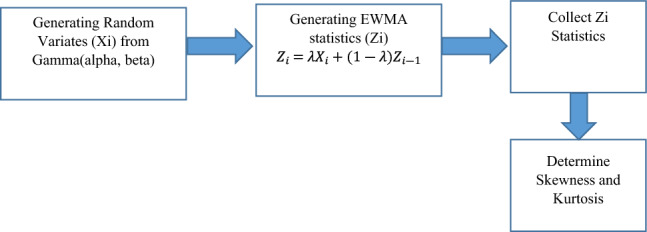 Statistical Process Control (SPC) plays a vital role in maintaining quality and reducing variability in manufacturing processes. Among SPC techniques, the Exponentially Weighted Moving Average (EWMA) stands out for its ability to detect small process shifts quickly, making it a valuable tool in ensuring product consistency and preventing quality issues. EWMA constructs control charts to monitor process mean shifts, tracks product/service quality by identifying variations, and monitors manufacturing process parameters for early detection of deviations and necessary adjustments. EWMA control chart has been proposed as an alternative to the Shewhart control chart. Sequential measurements are processed using the EWMA function before being placed on the control chart. One of the crucial concerns about the EWMA control chart is the asymmetry of the data around the mean. Although processing with the EWMA function reduces data skewness, the problem of asymmetric data may not be solved. The control chart is designed to leave in front of the upper control limit (UCL) α/2 of the data and behind the lower control limit (LCL) another α/2 of the data, and this does not occur in the case of symmetric data. α/2 represents the significance level for each tail in a two-tailed hypothesis test, indicating the probability of incorrectly rejecting the null hypothesis for each side of the distribution. Since many of the distributions in real life can be approximated by the Gamma distribution, the Gamma distribution was adopted in this study. The Monte Carlo simulation methodology was implemented to generate Gamma distributed data, process it with EWMA function and assess the skewness and kurtosis. The purpose of this paper is to evaluate the effect of EWMA parameters on the performance of the EWMA control chart. Moreover, it focuses on skewness and kurtosis reduction after data processing using the EWMA function. The findings help researchers and practitioners to select the best parameters. Further, the research investigates the effect of EWMA parameter on the shape of distribution.