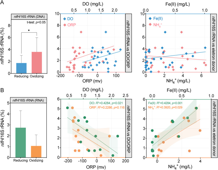 Biological nitrogen fixation (BNF), the conversion of N2 into bioavailable nitrogen (N), is the main process for replenishing N loss in the biosphere. However, BNF in groundwater systems remains poorly understood. In this study, we examined the activity, abundance, and community composition of diazotrophs in groundwater in the Hetao Plain of Inner Mongolia using 15N tracing methods, reverse transcription qPCR (RT-qPCR), and metagenomic/metatranscriptomic analyses. 15N2 tracing incubation of near in situ groundwater (9.5-585.4 nmol N L-1 h-1) and N2-fixer enrichment and isolates (13.2-1728.4 nmol N g-1 h-1, as directly verified by single-cell resonance Raman spectroscopy), suggested that BNF is a non-negligible source of N in groundwater in this region. The expression of nifH genes ranged from 3.4 × 103 to 1.2 × 106 copies L-1 and was tightly correlated with dissolved oxygen (DO), Fe(II), and NH4+. Diazotrophs in groundwater were chiefly aerobes or facultative anaerobes, dominated by Stutzerimonas, Pseudomonas, Paraburkholderia, Klebsiella, Rhodopseudomonas, Azoarcus, and additional uncultured populations. Active diazotrophs, which prefer reducing conditions, were more metabolically diverse and potentially associated with nitrification, sulfur/arsenic mobilization, Fe(II) transport, and CH4 oxidation. Our results highlight the importance of diazotrophs in subsurface geochemical cycles.