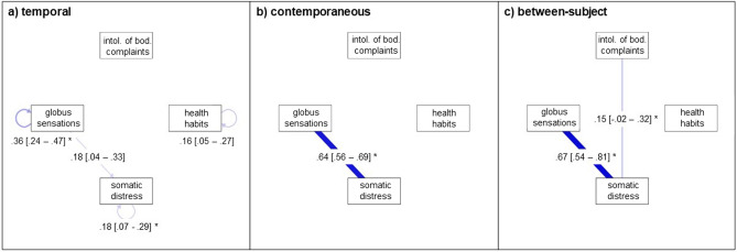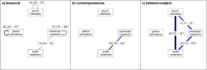 In this proof-of-concept study, we used a systems perspective to conceptualize and investigate treatment-related dynamics (temporal and cross-sectional associations) of symptoms and elements related to the manifestation of a common functional somatic syndrome (FSS), Globus Sensations (GS). We analyzed data from 100 patients (M = 47.1 years, SD = 14.4 years; 64% female) with GS who received eight sessions of group psychotherapy in the context of a randomized controlled trial (RCT). Symptoms and elements were assessed after each treatment session. We applied a multilevel graphical vector-autoregression (ml GVAR) model approach resulting in three separate, complementary networks (temporal, contemporaneous, and between-subject) for an affective, cognitive, and behavioral dimension, respectively. GS were not temporally associated with any affective, cognitive, and behavioral elements. Temporally, catastrophizing cognitions predicted bodily weakness (r = 0.14, p < 0.01, 95% confidence interval (CI) [0.04-0.23]) and GS predicted somatic distress (r = 0.18, p < 0.05, 95% CI [0.04-0.33]). Potential causal pathways between catastrophizing cognitions and bodily weakness as well as GS and somatic distress may reflect treatment-related temporal change processes in patients with GS. Our study illustrates how dynamic NA can be used in the context of outcome research.