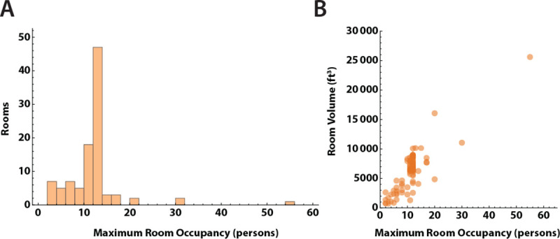 Methods: We established a community-engaged research partnership between the University of Rochester and the Mary Cariola Center school for students with IDD. Ambient CO2 levels were measured in 100 school rooms, and air changes per hour (ACH) were calculated. The number of SARS-CoV-2 cases for each room was collected over 20 months.