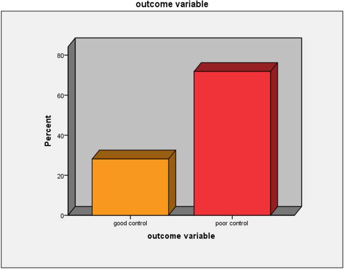 Result: A total of 231 children and adolescents with type 1 diabetes mellitus were included. The magnitude of poor glycemic control was 166 (71.9%) with 95% CI 66.0-77.7%). In multivariable analysis, the age of the child (aOR = 0.19, 95% CI: 0.05-0.83), education of the caregiver (aOR = 4.13;95% CI: 1.82-9.46), meal frequency less than three (aOR = 3.28; 95% CI: 1.25-8.62), and consumption of forbidden foods (aOR = 3.17; 95% CI: 1.21-8.29) were factors significantly associated with poor glycemic control.