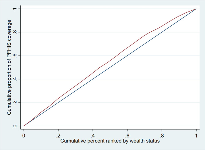 Results: A substantial proportion of our study respondents reported that they were covered by PFHIS (45.8%). Respondents belonging to lowest and middle wealth quintiles of household had significantly greater odds of being covered by insurance than respondents belonging to the richest wealth quintile. The negative magnitude of RCI [-16.8% (95%CI: -25.3, -8.4)] and SII [-21.5% (95%CI: -36.1, -7.0)] suggest a higher concentration of PFHIS coverage among the poor. Median OOPE for hospitalisation at private health facilities was INR 9000 (approx. USD 108.70) among those covered by PFHIS, whereas it was INR 10500 (approx. USD 126.82) at private health facilities among those not covered by insurance.