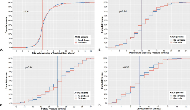Results: Of the 7155 patients screened, 863 had a diagnosis of ARDS. Among these ARDS patients, 157(18%) had cirrhosis. The overall 90 day mortality was of 43% (378/863), 57% (90/157) in patients with cirrhosis and 41% (288/706) in patients without cirrhosis (p < 0.001). On survival curves, cirrhosis was associated with 90 day mortality (p < 0.001). Cirrhosis was independently associated with 90 day mortality in multivariate analysis (hazard ratio = 1.56, 95% confidence interval 1.20-2.02). There was no change in mortality over time in ARDS patients with and without cirrhosis. SOFA (p = 0.04) and non-hepatic SOFA (p = 0.02) increased over time in ARDS patients without cirrhosis, and remained stable in ARDS patients with cirrhosis. Tidal volume, positive end-expiratory pressure, plateau pressure and driving pressure were not different between ARDS patients with and without cirrhosis.
