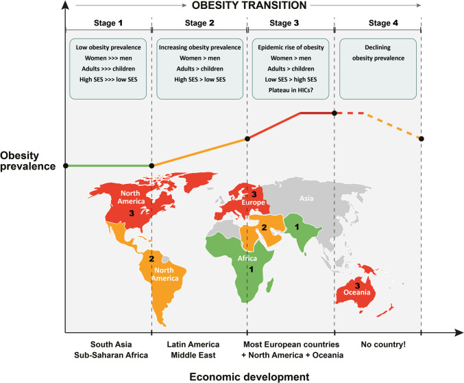 Recent findings: The escalating global obesity epidemic represents one of the most serious public health challenges. There have been some indications that in high-income populations, the rate of obesity increase in adults has been stabilized after the decade 2000-2010, suggesting a possible plateau. Current evidence also suggests that obesity rates have been stabilized in children and adolescents of most economically advanced countries since 2000, which is possibly related to healthier dietary habits and increased levels of physical activity. On the other hand, there is a steady uninterrupted rise in low-income nations, and the universal trend is obesity escalation rather than slowdown, mainly driven by sharp increases in the obesity prevalence of low-income populations. Furthermore, an increasing number of high- and middle-income countries are currently experiencing an epidemic of severe obesity. In high-income populations, severe obesity is expected to double its prevalence from 10 to 20% between 2020 and 2035, posing an enormous threat for healthcare systems. Even if transiently stabilized, the obesity prevalence remains globally at unacceptably high levels, and there is no guarantee that the current stability (if any) will be maintained for long. In this review, we explore the underlying drivers of the global obesity epidemic; we provide possible explanations for the reported slowdown of the obesity rates in some countries; and we overall take a critical perspective on the obesity plateau hypothesis, emphasizing the urgent need for immediate effective actions at population and regional level in order to halt the alarming obesity escalation and its serious health risks.