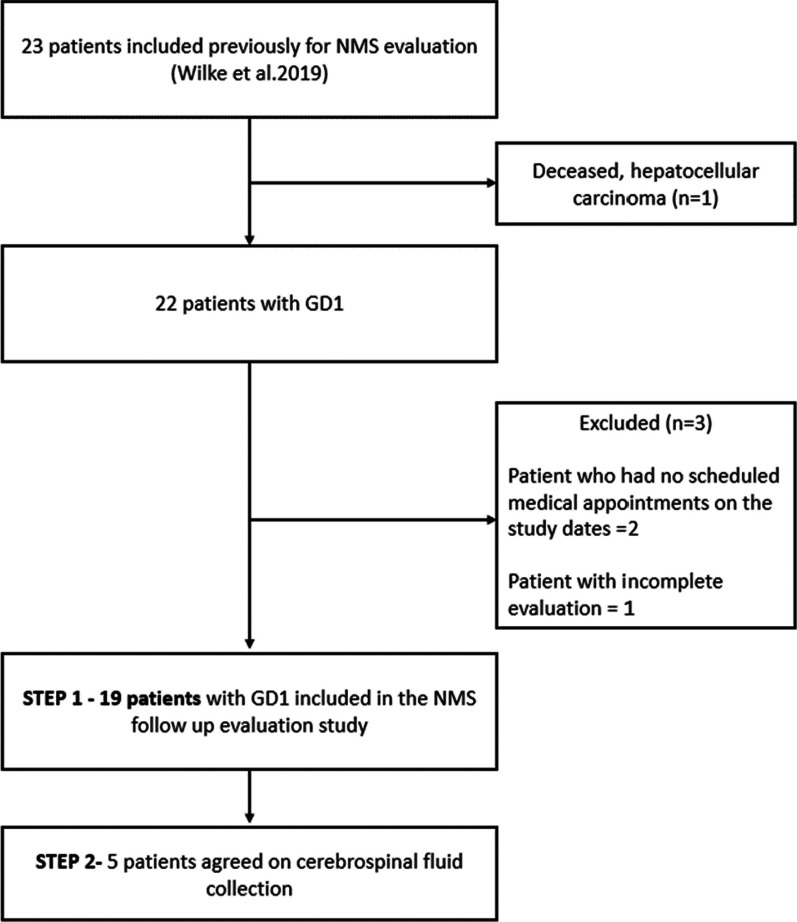 Conclusions: The patient with the highest number of NMS in our 2018 cohort was the one that developed PD, corroborating with the importance of this longitudinal follow-up. CSF and plasma analysis might allow a better understanding of the neurodegenerative processes connecting PD and the lysosomal environment. Further analysis is needed to understand this relationship.