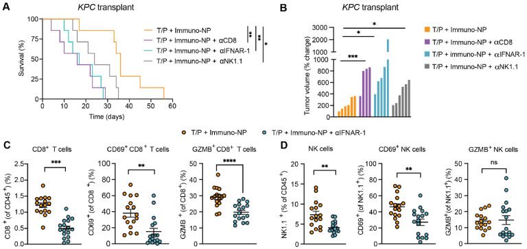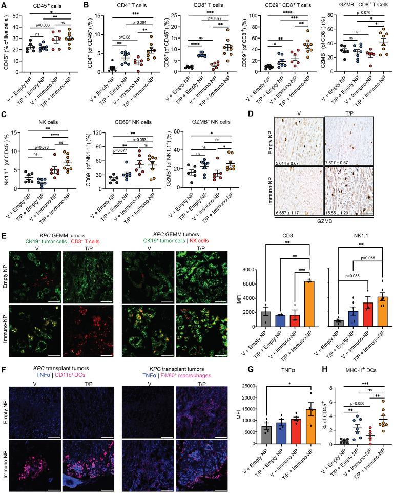 Nanoparticle delivery of innate immune agonists combines with senescence-inducing agents to mediate T cell control of pancreatic cancer