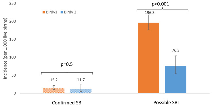 Conclusion: Our results suggest that the incidence of severe bacterial infection is still high in the community of Madagascar, even if it seems lower when compared to BIRDY 1 estimates, and that existing neonatal sepsis treatment guidelines may no longer be appropriate in Madagascar. These results motivate to further strengthen actions for the prevention, early diagnosis and case management during the first 3 days of life.
