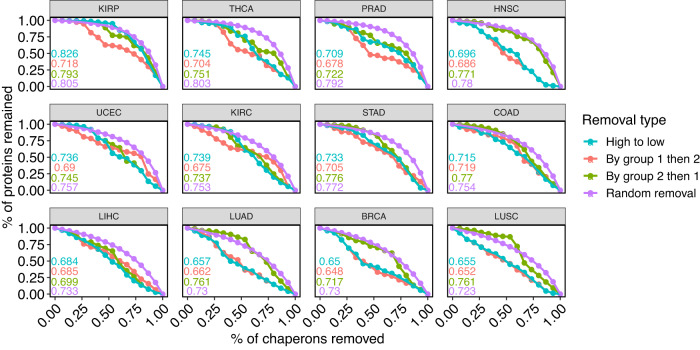 Cancer cells alter the expression levels of metabolic enzymes to fuel proliferation. The mitochondrion is a central hub of metabolic reprogramming, where chaperones service hundreds of clients, forming chaperone-client interaction networks. How network structure affects its robustness to chaperone targeting is key to developing cancer-specific drug therapy. However, few studies have assessed how structure and robustness vary across different cancer tissues. Here, using ecological network analysis, we reveal a non-random, hierarchical pattern whereby the cancer type modulates the chaperones' ability to realize their potential client interactions. Despite the low similarity between the chaperone-client interaction networks, we highly accurately predict links in one cancer type based on another. Moreover, we identify groups of chaperones that interact with similar clients. Simulations of network robustness show that this group structure affects cancer-specific response to chaperone removal. Our results open the door for new hypotheses regarding the ecology and evolution of chaperone-client interaction networks and can inform cancer-specific drug development strategies.