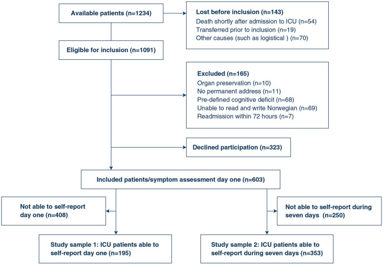 Conclusions: Self-reporting ICU patients experienced a high and consistent symptom burden across seven days. Certain variables were associated with the degree of symptom intensity, but further research is required to better understand these associations.