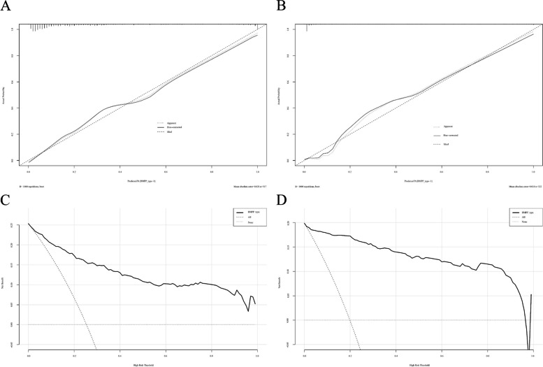 Results: Multivariate analysis revealed five significant independent predictors of RMPP among patients with MPP: age (hazard ratio [HR] 1.16, 95% confidence interval [CI] 1.08-1.33, P = 0.038), fever duration (HR 1.34, 95%CI 1.20-1.50, P < 0.001), lymphocyte count (HR 0.45, 95%CI 0.23-0.89, P = 0.021), serum D-dimer (D-d) level (HR 1.70, 95%CI 1.16-2.49, P = 0.006), and pulmonary imaging score (HR 5.16, 95%CI 2.38-11.21, P < 0.001). The area under the ROC curve was 90.7% for the development cohort and 96.36% for the validation cohort. The internal and external verification calibration curves were almost linear with slopes of 1, and the DCA curve revealed a net benefit with the final predictive nomogram.