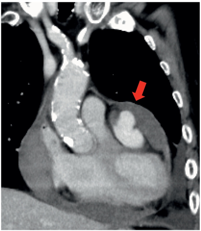 Learning objective: To recognize the presence of a ruptured infectious coronary aneurysm after a primary coronary stenting for ST-elevation myocardial infarction.To discuss the treatment strategies for a ruptured infectious coronary aneurysm with a covered stent.