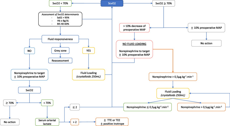 Methods: We designed a prospective, randomised, single-blinded, multicentre controlled superiority study with a 1:1 allocation ratio. Patients to be included will be high-risk major surgery patients (> 50 years old, ASA score > 2, major intra-abdominal or intra-thoracic surgery > 90 min). Patients in the control group will undergo standard fluid loading-based goal-directed therapy, as recommended by the guidelines. Patients in the intervention group will have ScvO2-based goal-directed therapy and receive fluid loading only if fluid responsiveness and cardiac output inadequacy are present. The primary outcome will be the Comprehensive Complication Index on day five postoperatively.