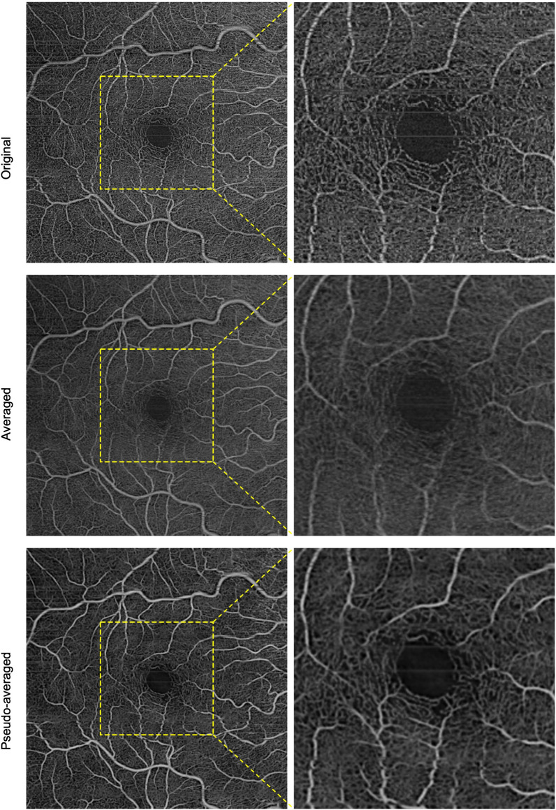 Keywords: Averaging; Deep learning; Denoising; Diabetic retinopathy; Image artifact; Image quality; OCTA; Optical coherence tomography angiography; Pseudoaveraging.