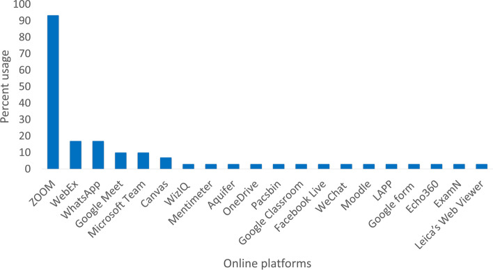Results: Thirty of the obtained articles were included in the study. The selected articles were from North and South/Latin America, Asia & Pacific, South Africa, and Europe regions. Nineteen of the selected articles dealt with undergraduate education, ten with postgraduate, and one with both groups. The affordability of digital devices and the availability of Internet services were the major challenges for low- and middle-income economies. The ZOOM platform has been adopted by more than 90% of the education systems.