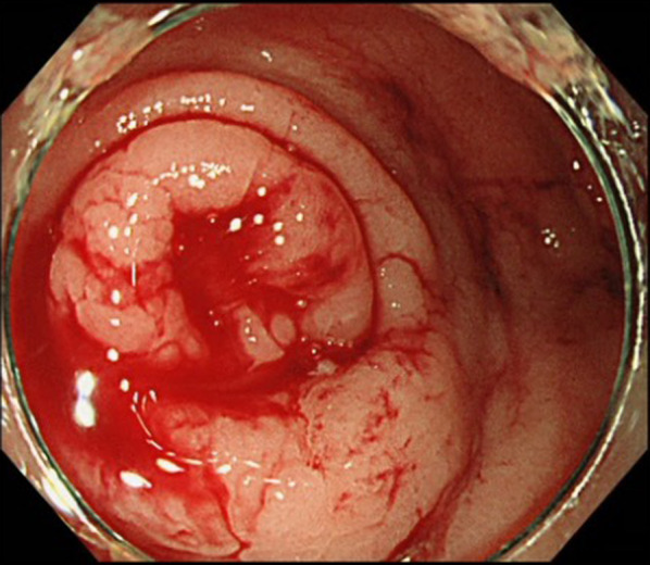 Case presentation: A 71-year-old man came to our hospital with a complaint of bloody stools. He had progressive anemia and persistent fresh bloody stools, so he underwent lower gastrointestinal endoscopy. Active bleeding was confirmed from the orifice of the appendix, but the bleeding could not be stopped even with clips, so an emergency laparoscopic appendectomy was performed. His postoperative course was good, and he was discharged on the third postoperative day. Although the pathology results did not allow identification of the source of the bleeding, an appendiceal diverticulum was observed, and appendiceal diverticular bleeding was suspected.