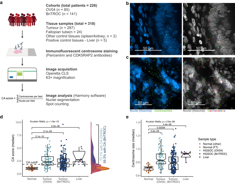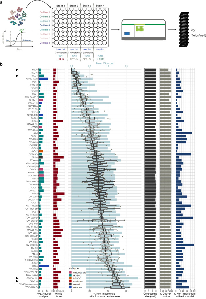 Molecular landscape and functional characterization of centrosome amplification in ovarian cancer