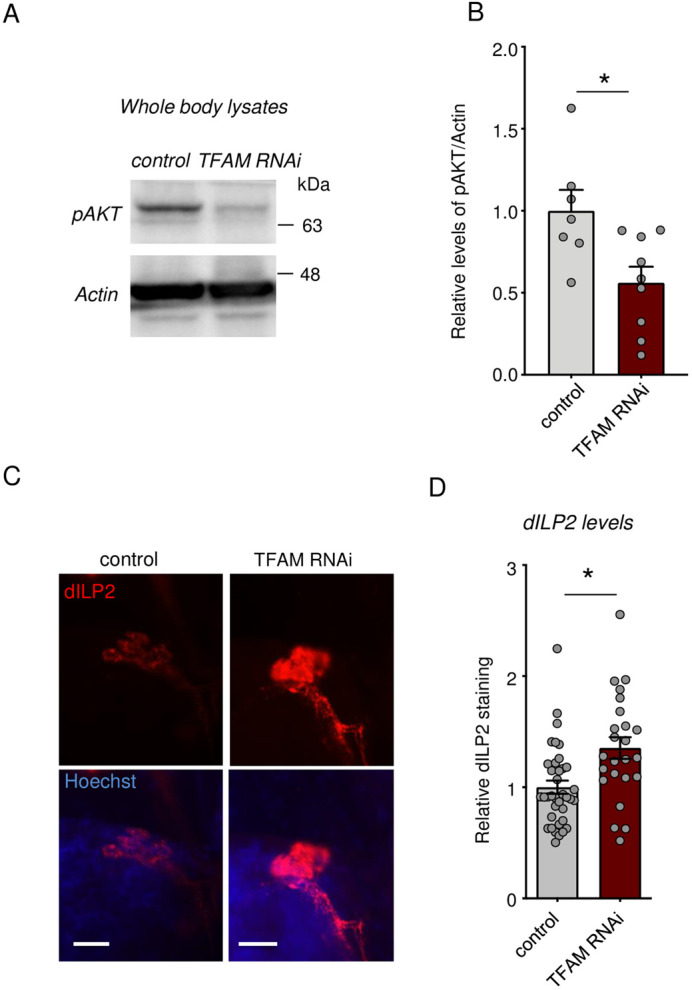 Keywords: Drosophila; Cytokine TNF-α/Eiger; Hemocytes; Insulin signaling; JNK signaling; Metabolism; Mitochondria; OxPhos; Systemic growth; TFAM.