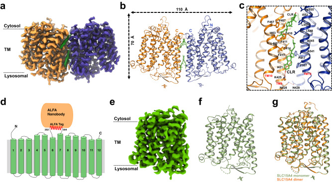 Toll-like receptors (TLRs) are a class of proteins that play critical roles in recognizing pathogens and initiating innate immune responses. TASL, a recently identified innate immune adaptor protein for endolysosomal TLR7/8/9 signaling, is recruited by the lysosomal proton-coupled amino-acid transporter SLC15A4, and then activates IRF5, which in turn triggers the transcription of type I interferons and cytokines. Here, we report three cryo-electron microscopy (cryo-EM) structures of human SLC15A4 in the apo monomeric and dimeric state and as a TASL-bound complex. The apo forms are in an outward-facing conformation, with the dimeric form showing an extensive interface involving four cholesterol molecules. The structure of the TASL-bound complex reveals an unprecedented interaction mode with solute carriers. During the recruitment of TASL, SLC15A4 undergoes a conformational change from an outward-facing, lysosomal lumen-exposed state to an inward-facing state to form a binding pocket, allowing the N-terminal helix of TASL to be inserted into. Our findings provide insights into the molecular basis of regulatory switch involving a human solute carrier and offers an important framework for structure-guided drug discovery targeting SLC15A4-TASL-related human autoimmune diseases.